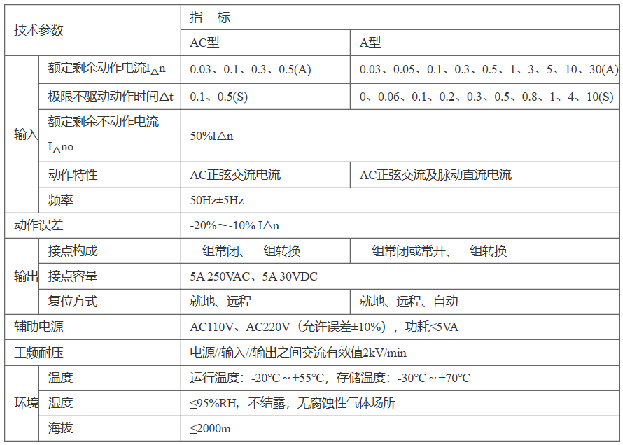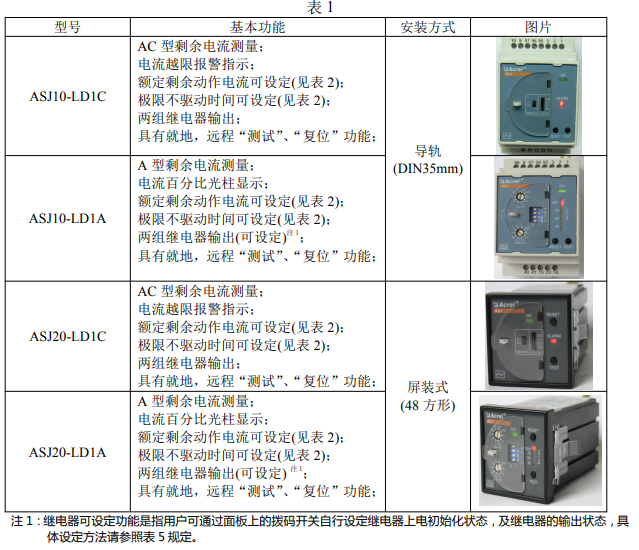 具体型号:ASJ20-LD1C 技术要求:额定剩余动作电流300mA;极限不驱动动作时间0.5s;上电工作时继电器输出1组常闭、1组转换。