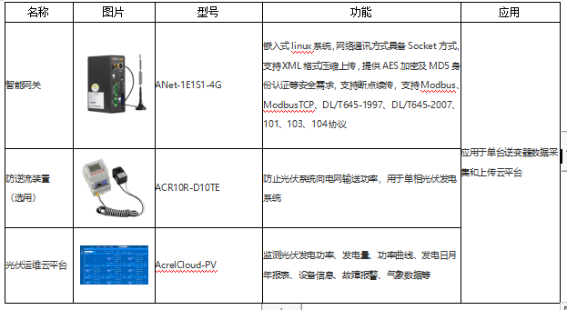 部分小型光伏电站为自发自用,余电不上网模式,这种类型的光伏电站需要安装防逆流保护装置,避免往电网输送电能。光伏电站规模较小,而且比较分散,对于光伏电站的管理者来说,通过云平台来管理此类光伏电站非常有必要,安科瑞在这类光伏电站提供的解决方案包括以下方面: