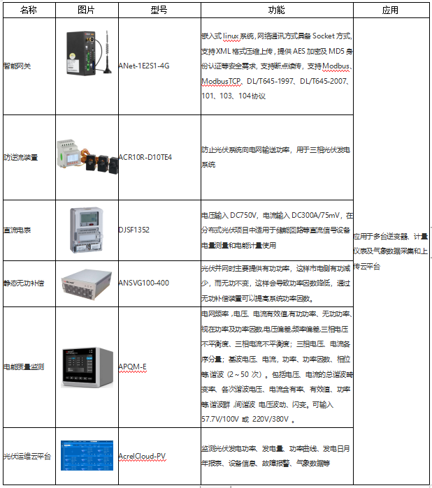 部分光伏电站并网点需要监测并网点电能质量,包括电源频率、电源电压的大小、电压不平衡、电压骤升/骤降/中断、快速电压变化、谐波/间谐波THD、闪变等,需要安装单独的电能质量监测装置。部分光伏电站为自发自用,余电不上网模式,这种类型的光伏电站需要安装防逆流保护装置,避免往电网输送电能。