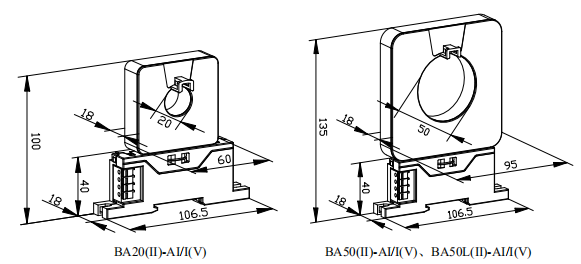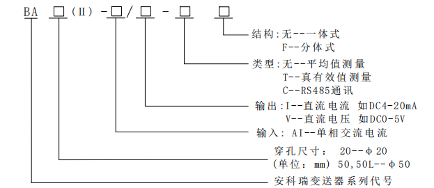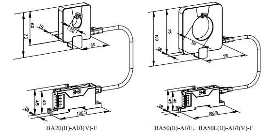 智能型BA系列电流传感器应用电磁感应原理,对电网中的交流电流进行实时测量,采用恒流和线性补偿技术,将其隔离变换为标准的直流信号输出,或通过RS485接口(Modbus-RTU协议)将测量数据进行传输。DC24V或12V安全电压供电,可广泛用于工业自动化领域。BA50L(Ⅱ)-AI为交流剩余电流互感器,主要检测用电系统的漏电流,能随时掌握电气线路和设备的情况,防止因漏电而发生的火灾等事故。
