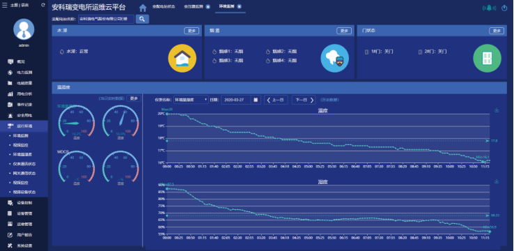 实时监测变电所的运行环境,包括环境温湿度、水浸、门磁、烟感、线缆温度等,并可实现视频监视和录像回放。