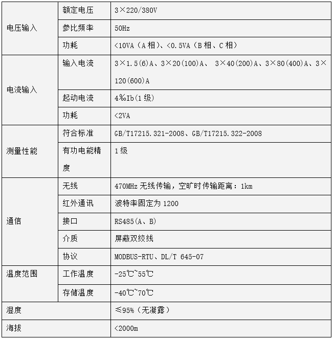 技术要求:3×1.5(6)A、3×20(100)A、 3×40(200)A、3×80(400)A、3×120(600)A